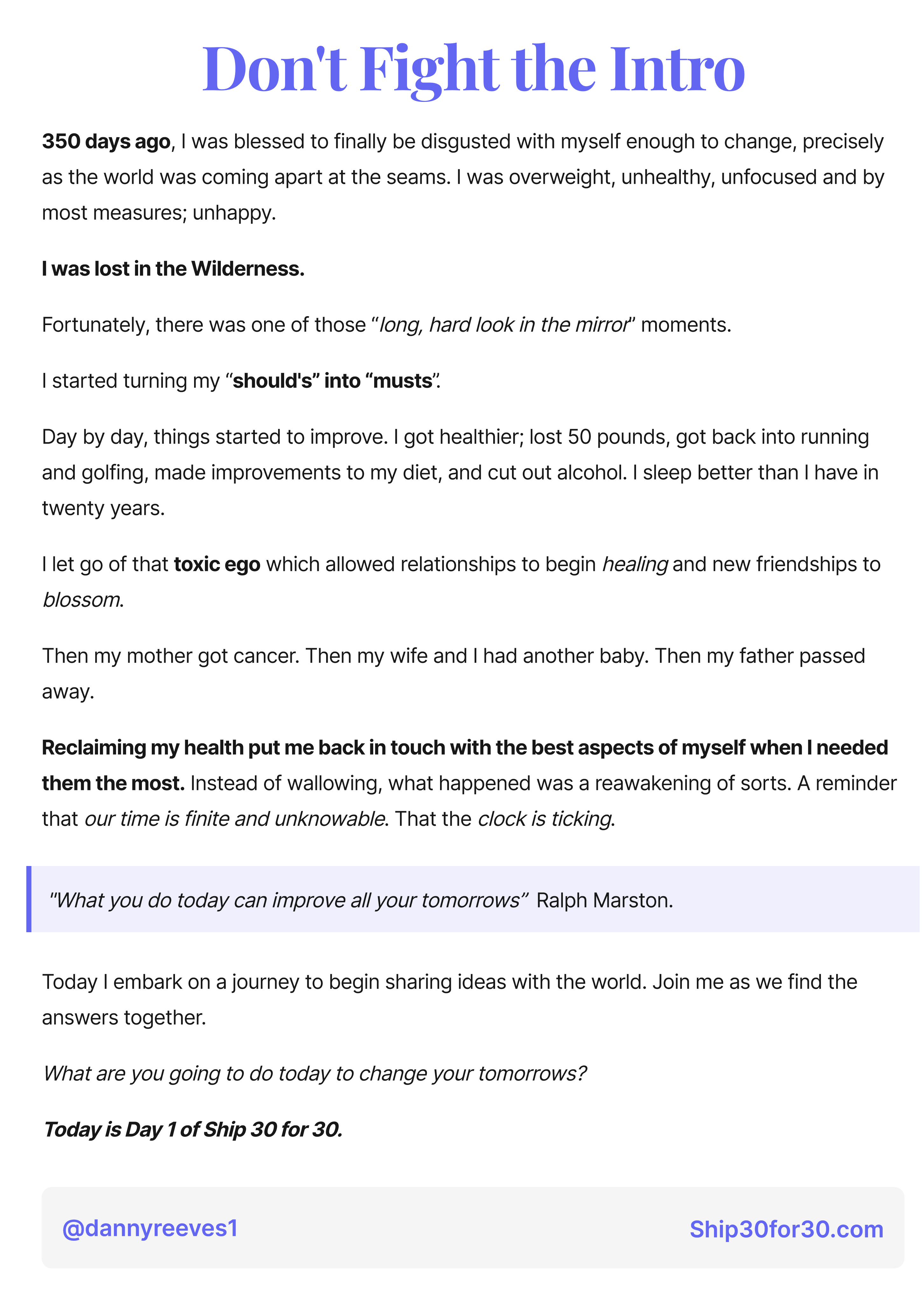 Today is Day 1 of Ship 30 for 30.