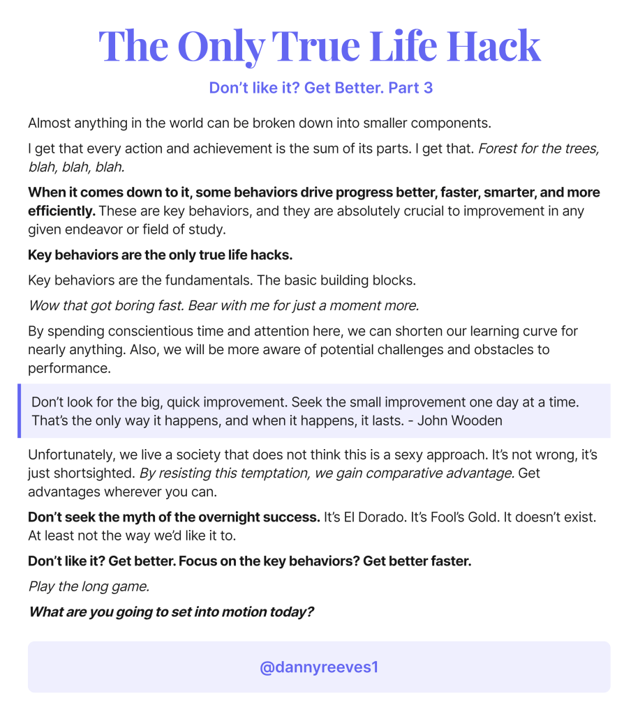 Don’t like it? Get better. Focus on the key behaviors? Get better faster.