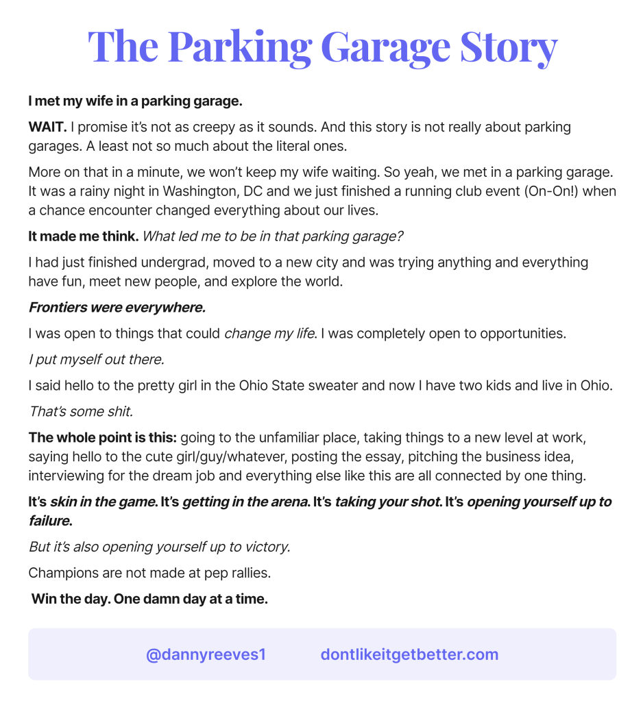 WAIT. I promise it’s not as creepy as it sounds. And this story is not really about parking garages. A least not so much about the literal ones.