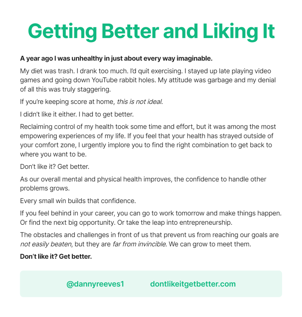 Reclaiming control of my health took some time and effort, but it was among the most empowering experiences of my life. If you feel that your health has strayed outside of your comfort zone, I urgently implore you to find the right combination to get back to where you want to be.