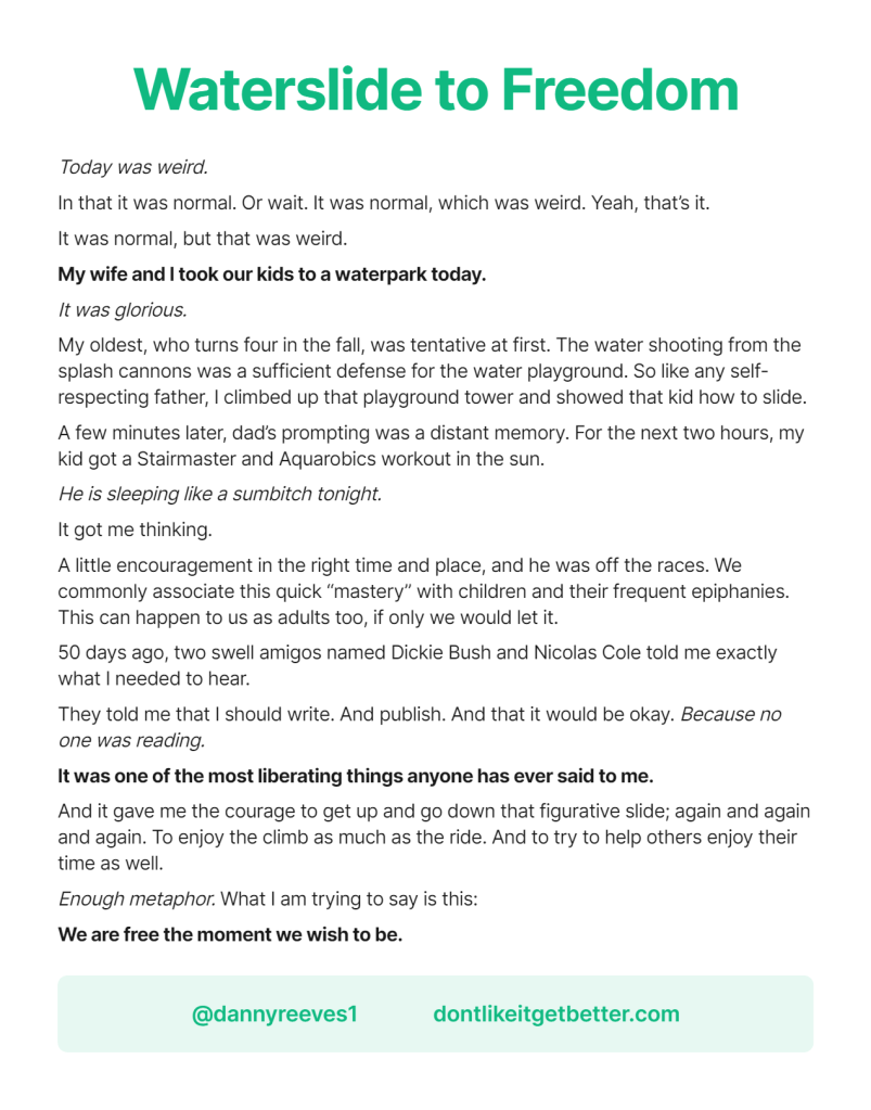 50 days ago, two swell amigos named Dickie Bush and Nicolas Cole told me exactly what I needed to hear.