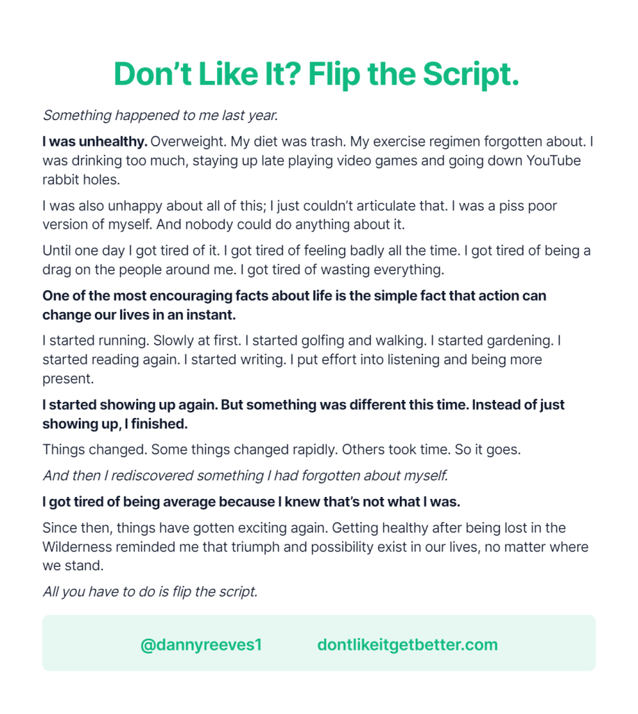 I was unhealthy. Overweight. My diet was trash. My exercise regimen forgotten about. I was drinking too much, staying up late playing video games and going down YouTube rabbit holes.