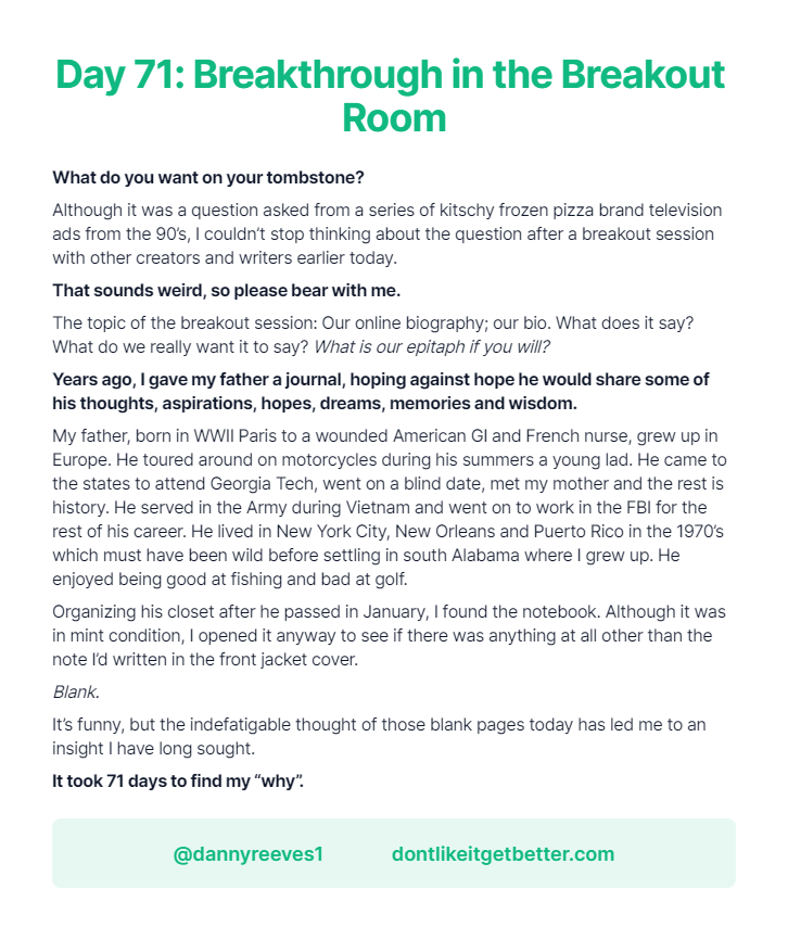 The topic of the breakout session: Our online biography; our bio. What does it say? What do we really want it to say? What is our epitaph if you will?