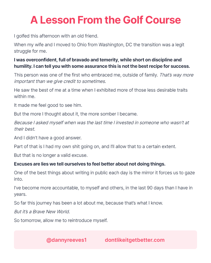 I’ve become more accountable, to myself and others, in the last 90 days than I have in years.