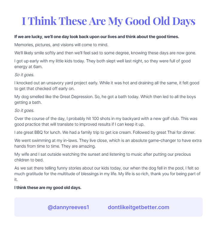 If we are lucky, we’ll one day look back upon our lives and think about the good times.
