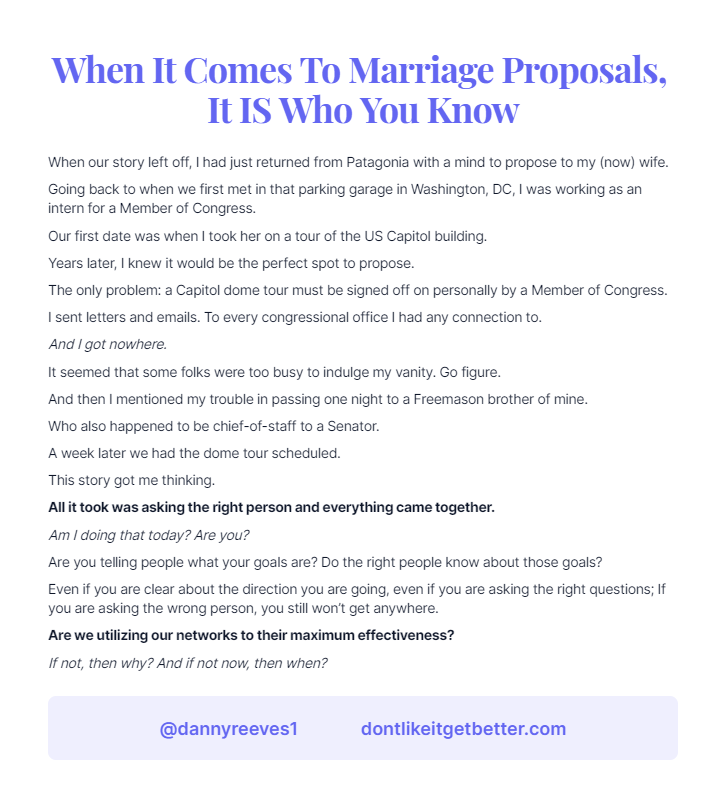 Going back to when we first met in that parking garage in Washington, DC, I was working as an intern for a Member of Congress.