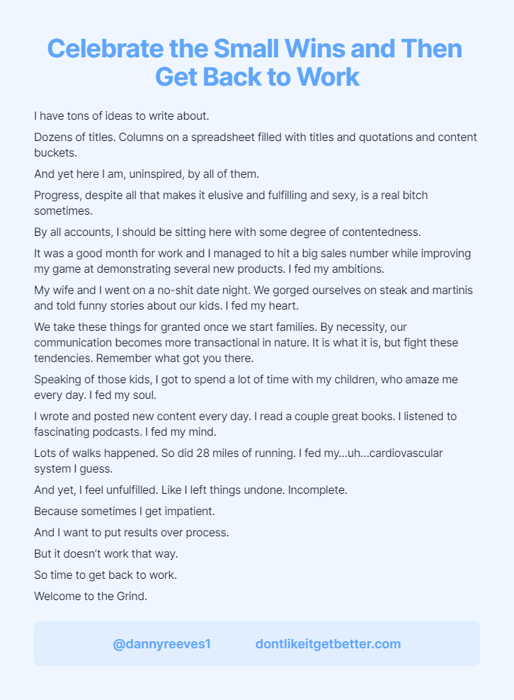 I wrote and posted new content every day. I read a couple great books. I listened to fascinating podcasts. I fed my mind.