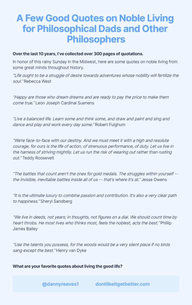 In honor of this rainy Sunday in the Midwest, here are some quotes on noble living from some great minds throughout history.