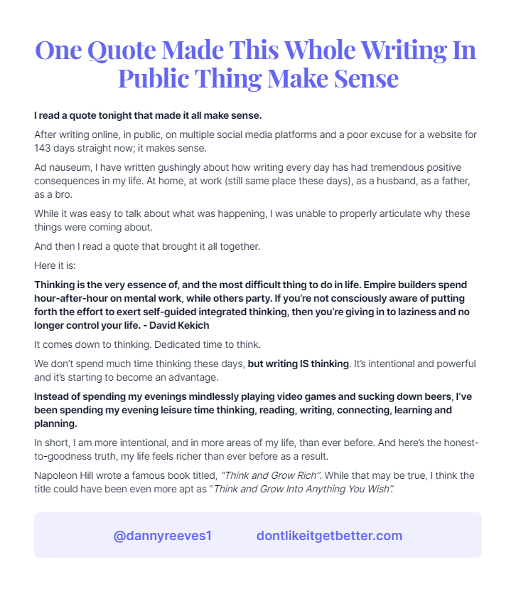 After writing online, in public, on multiple social media platforms and a poor excuse for a website for 143 days straight now; it makes sense.