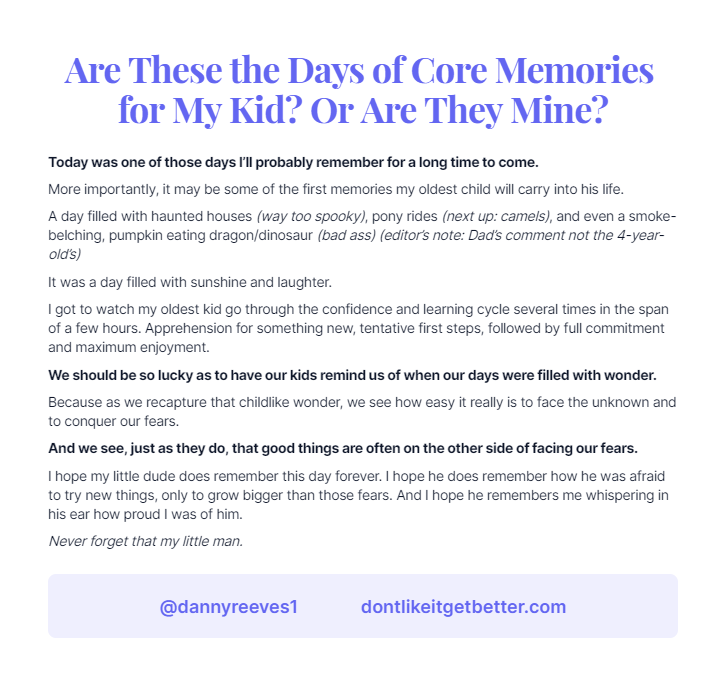 More importantly, it may be some of the first memories my oldest child will carry into his life.