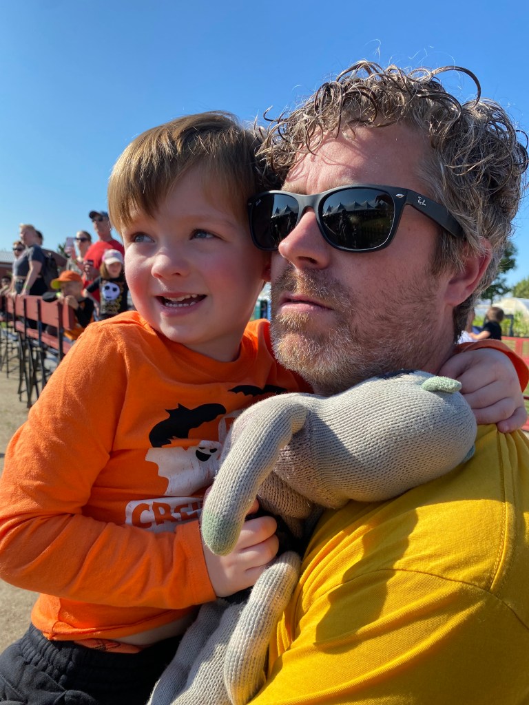 A day filled with haunted houses (way too spooky), pony rides (next up: camels), and even a smoke-belching, pumpkin eating dragon/dinosaur (bad ass) (editor’s note: Dad’s comment not the 4-year-old’s)