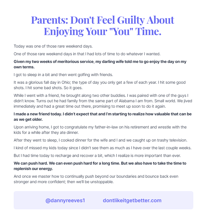 We can push hard. We can even push hard for a long time. But we also have to take the time to replenish our energy.
