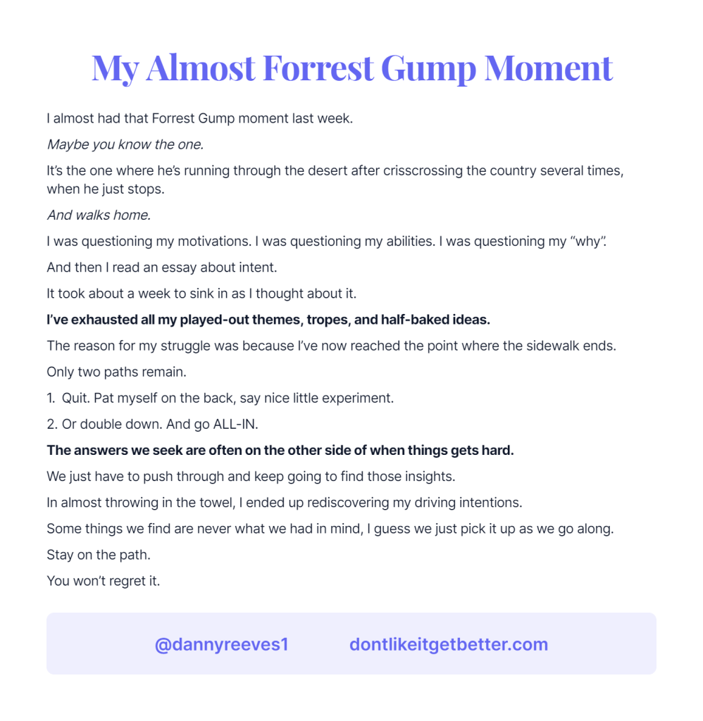 I was questioning my motivations. I was questioning my abilities. I was questioning my “why”.