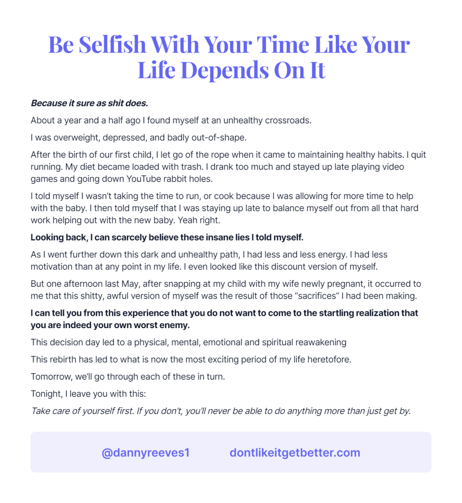 Take care of yourself first. If you don’t, you’ll never be able to do anything more than just get by.