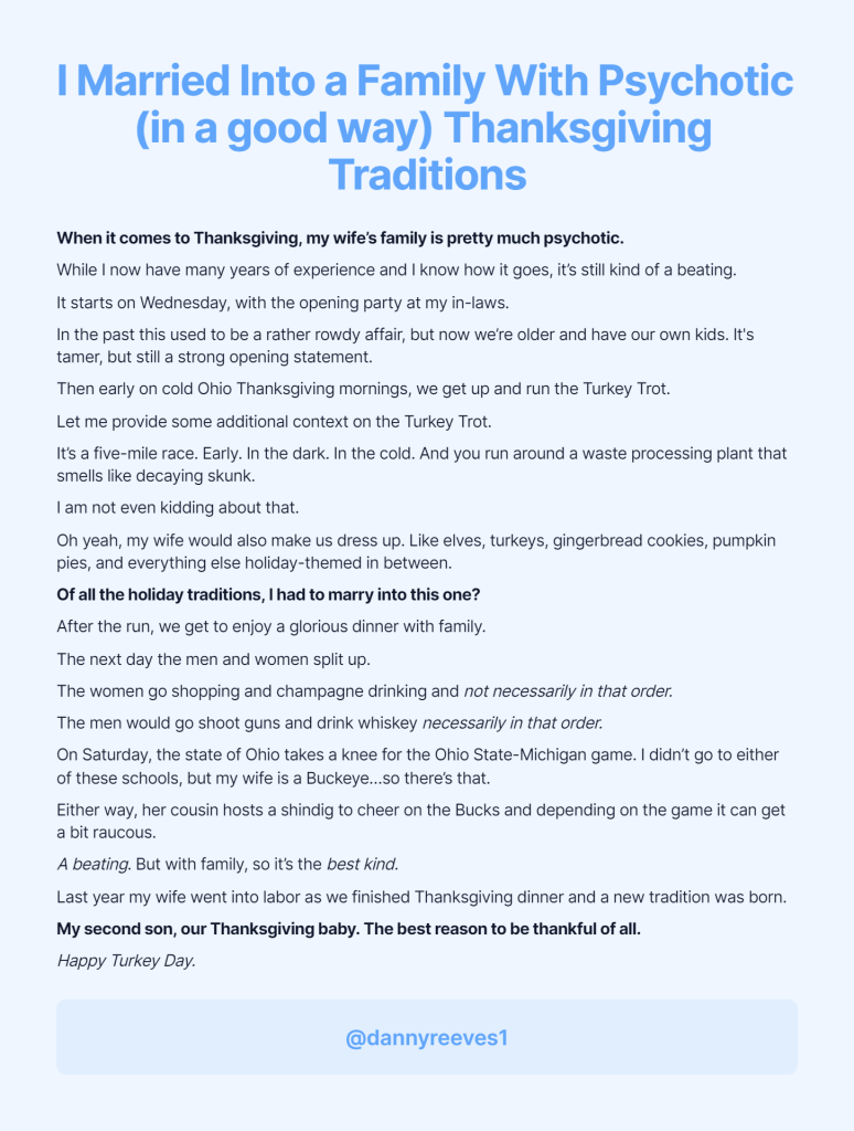 When it comes to Thanksgiving, my wife’s family is pretty much psychotic.