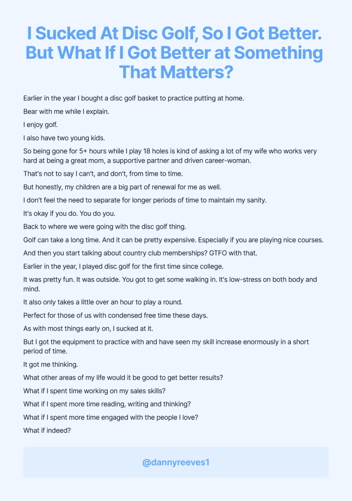 It was pretty fun. It was outside. You got to get some walking in. It’s low-stress on both body and mind.
